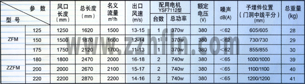 ZFM2.5A型軸流風(fēng)幕技術(shù)參數(shù)